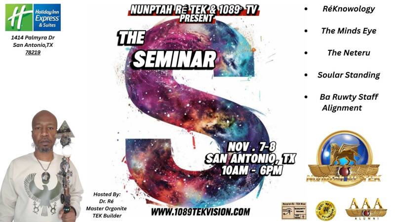 In This Two Day Event We Will Unlock The Hidden (Amun) Code Of The Letter S. With Q & A Format. This 3rd And Final Part Of The Trilogy Of The "N" & "O" ..The S. ENtailing The Next Generation Of Consciously Evolution Preparing The Beings In This Reality For The Next Wave Of Transmissions That Are Due To Occur Upon The Opening Of The 2033 Vortex. RéKnowology 101(Yellow Level) The Minds Eye And The Connectivity It Has To The Brain And The Body Along With The Constellations In The Sky. The Science Of The Neteru The S.I.M. Associated With Their Guidance. Soular Standing Our Connection To These Forces & The Relevance We Play Within The Tapestry Of The Omniversal Life Force. Ending The Event With The Ba Ruwty Staff. Experience The Alignment, Blockage Removal, And Reset The Flow Of Life Force With Fluidity Once More.